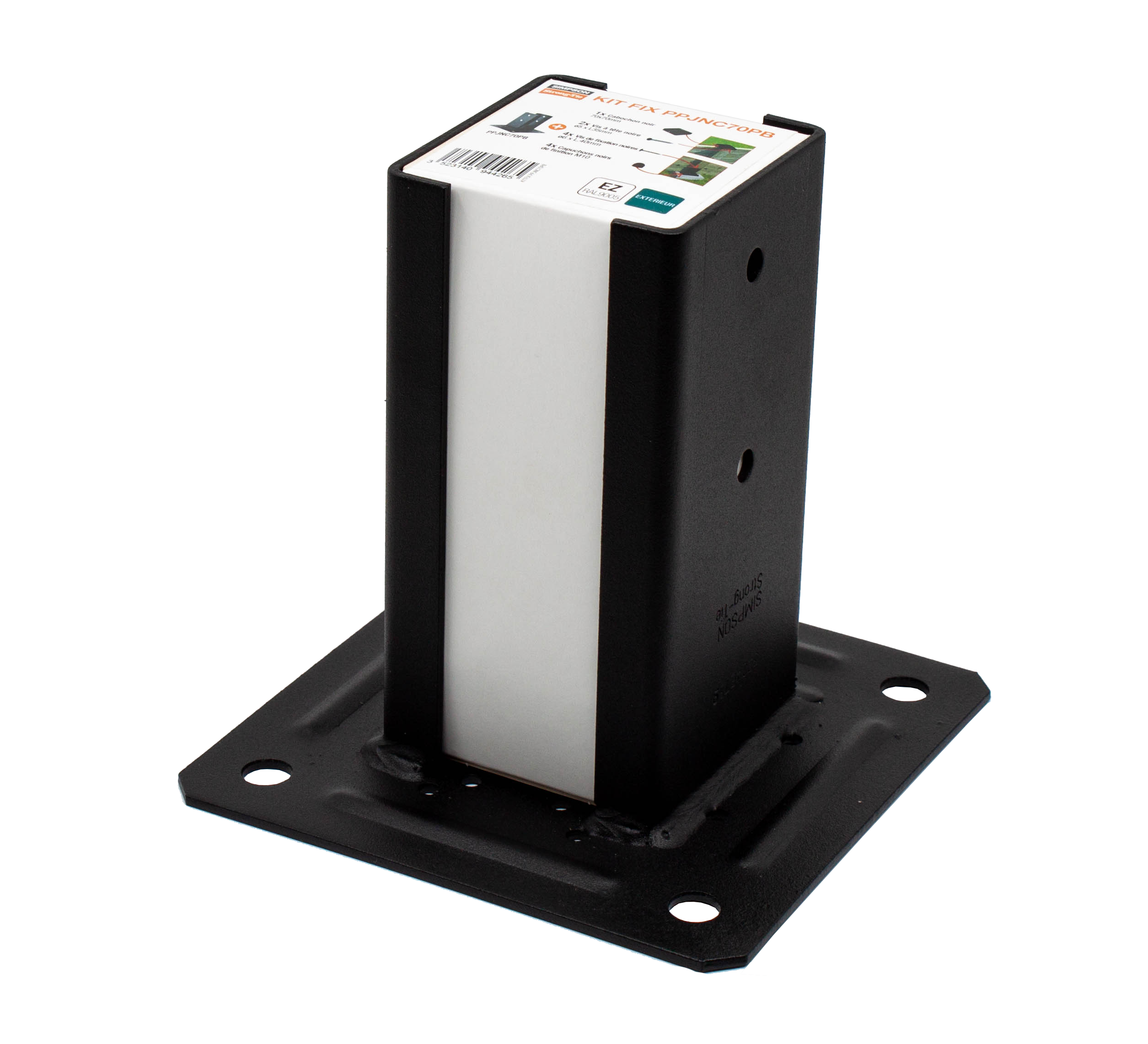 Kit pied de poteau carré 70 noir avec fentes sans goujon | KITFIX70PB | Simpson | 1 pièce | 19,00 € | simpson | |||